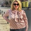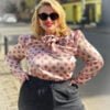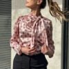 Cămașă cu eșarfă roz pudrat cu buline