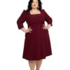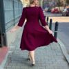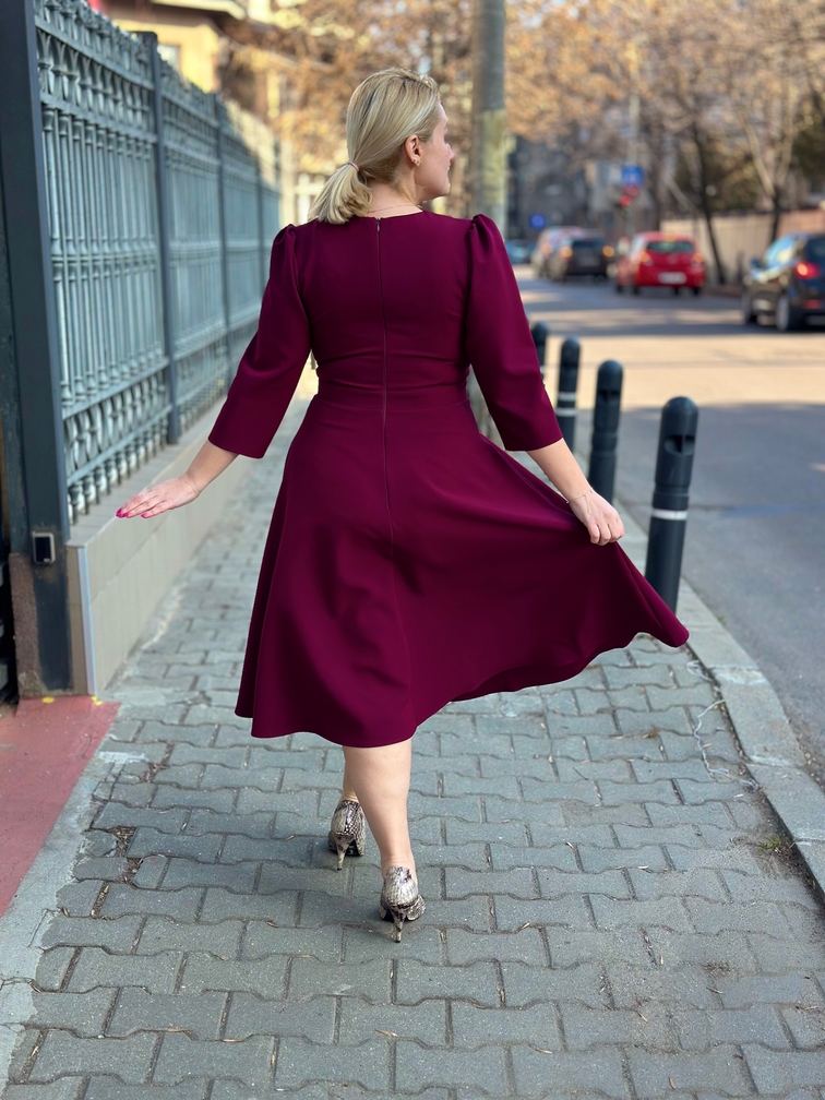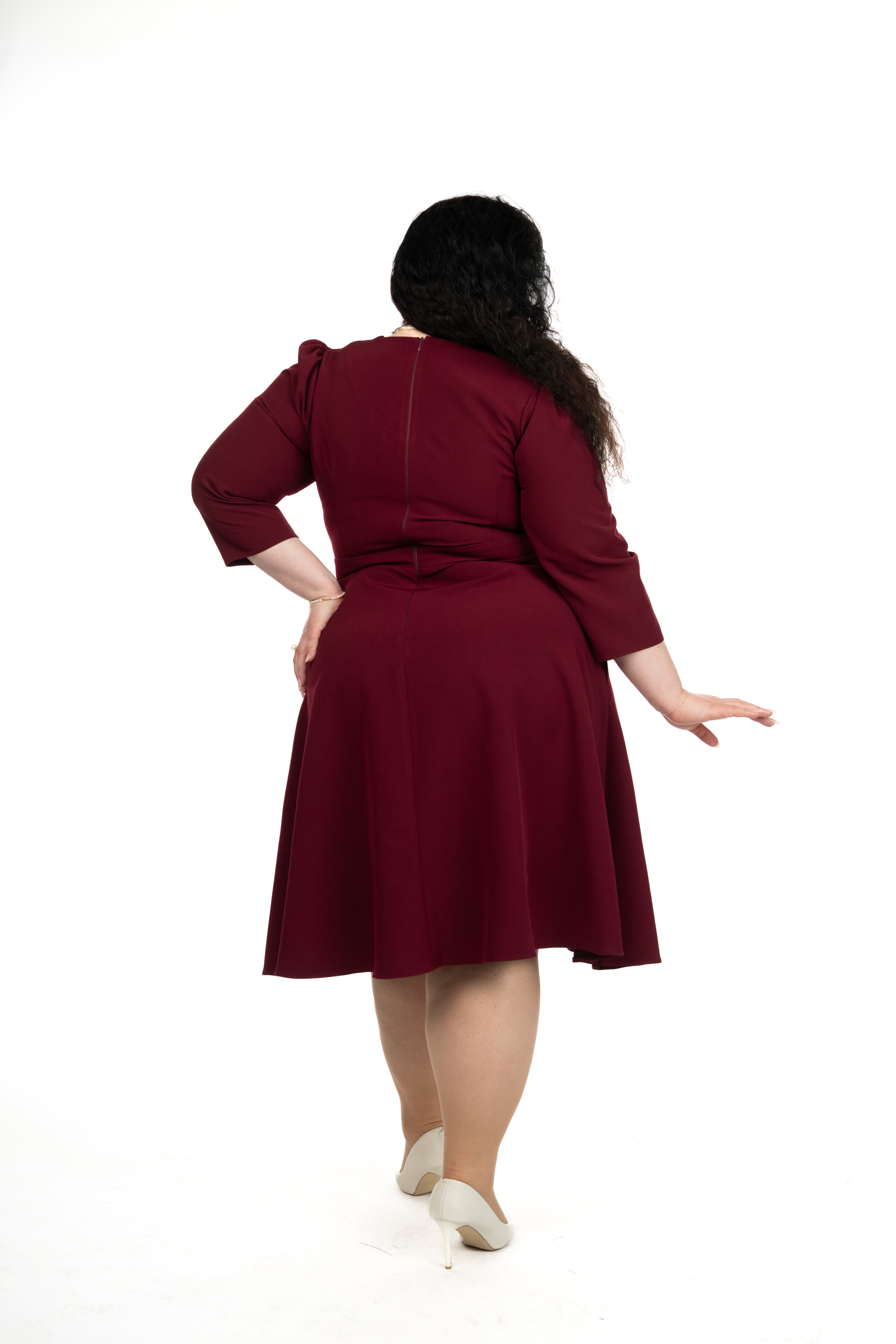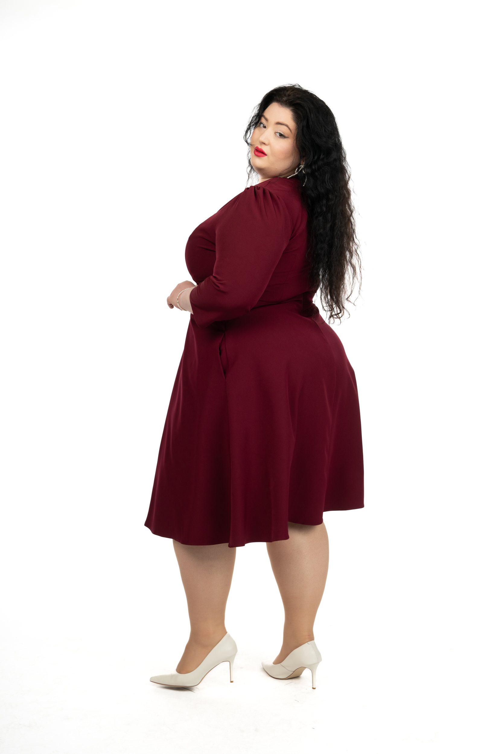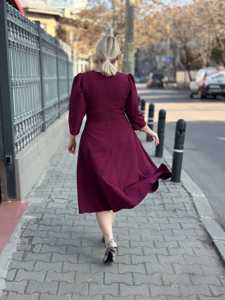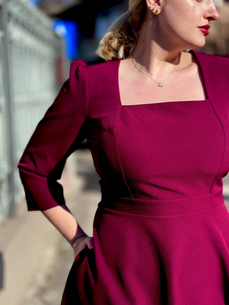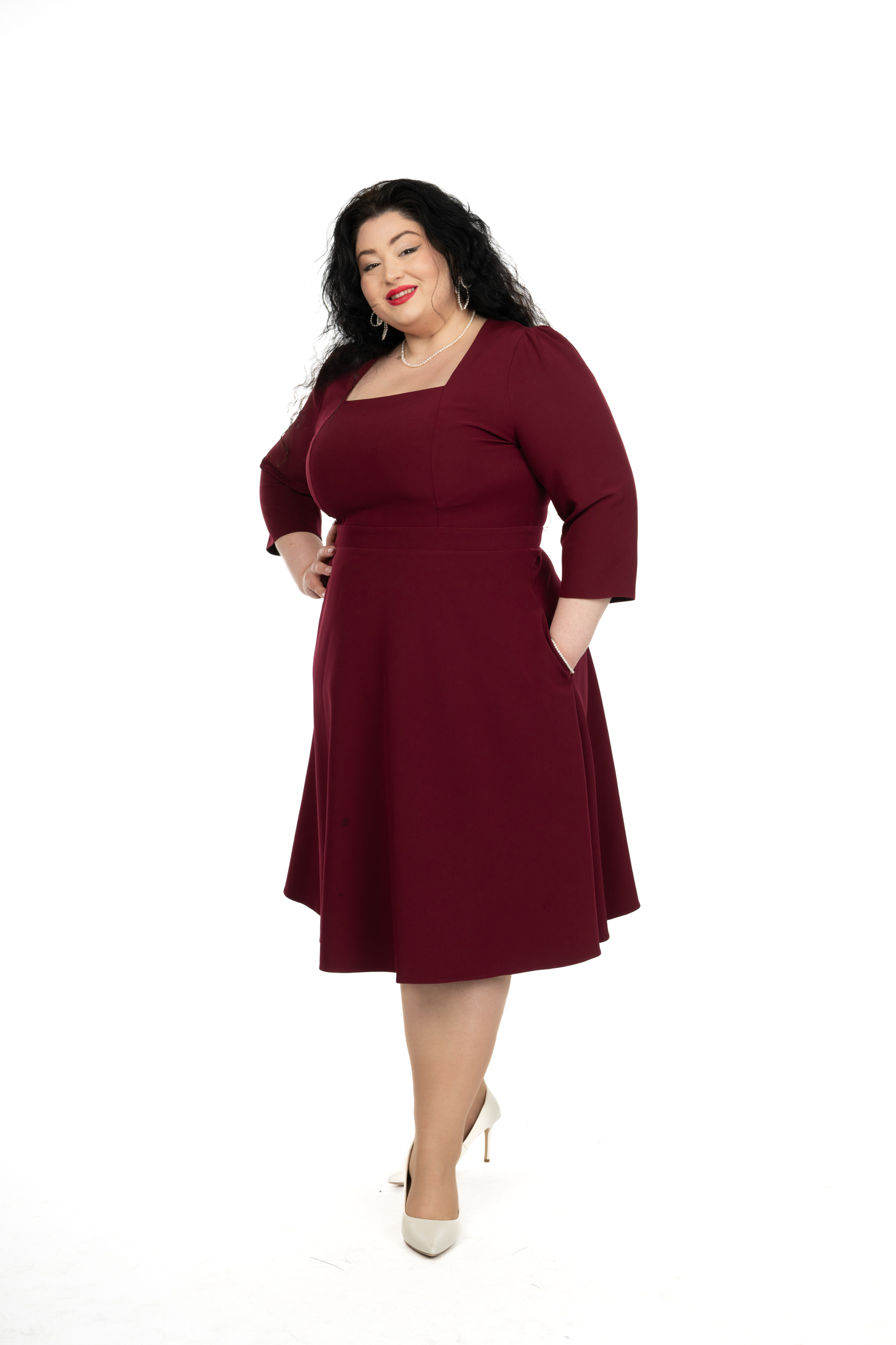 Rochia MAGDA marsala subliniază talia și se potrivește pe orice formă de corp pentru că flatează orice siluetă indiferent de măsură. Decolteul pătrat avantajează doamnele cu bust generos, mai ales pe cele cu siluetă măr sau trapez.