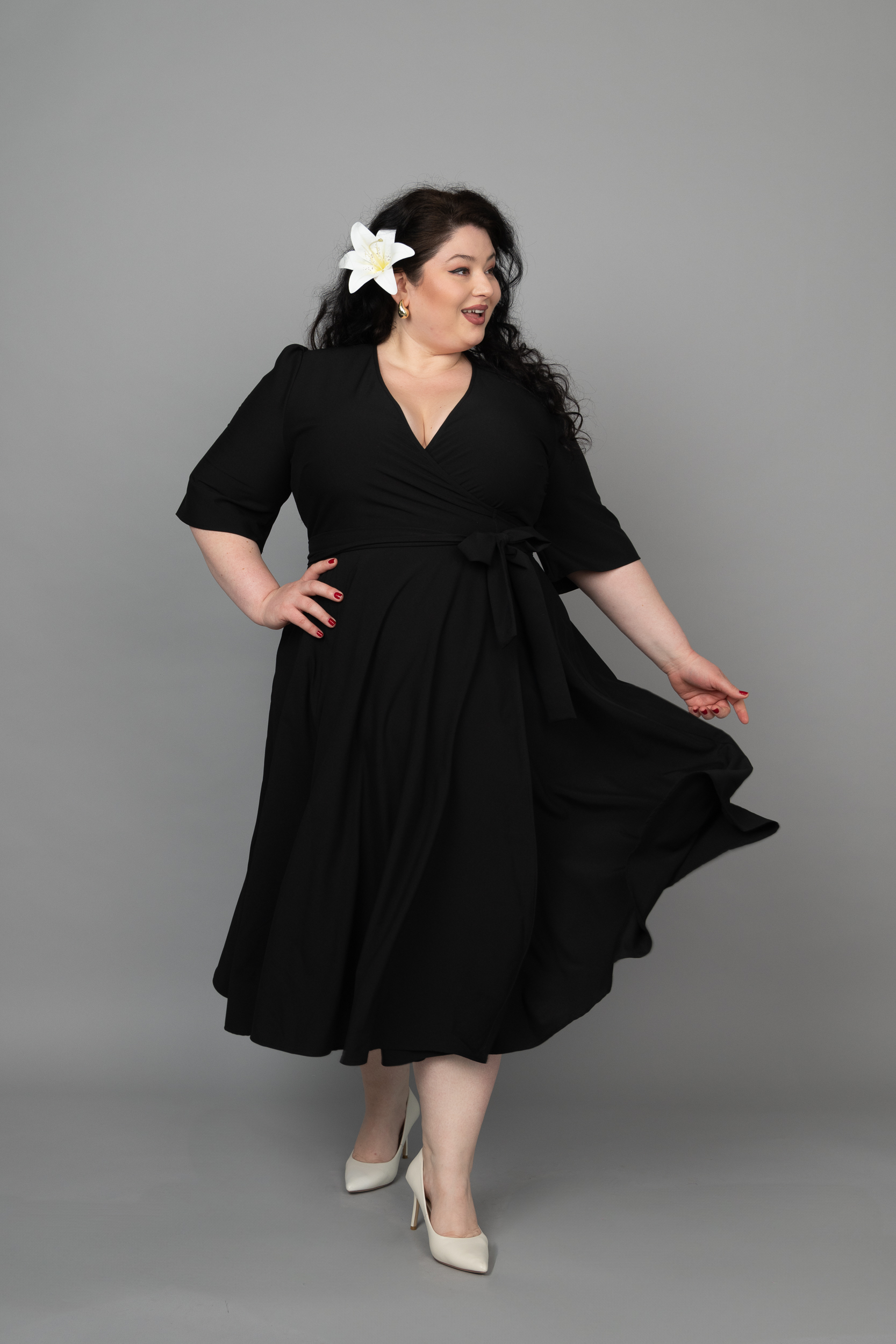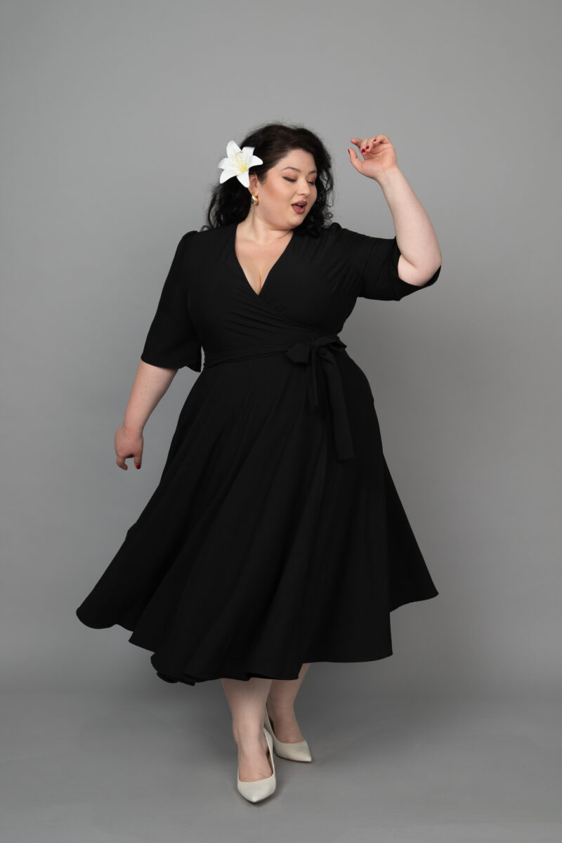 Rochia Silvia neagră flatează siluetele: măr, dreptunghi, triunghi, clepsidră și pară.
