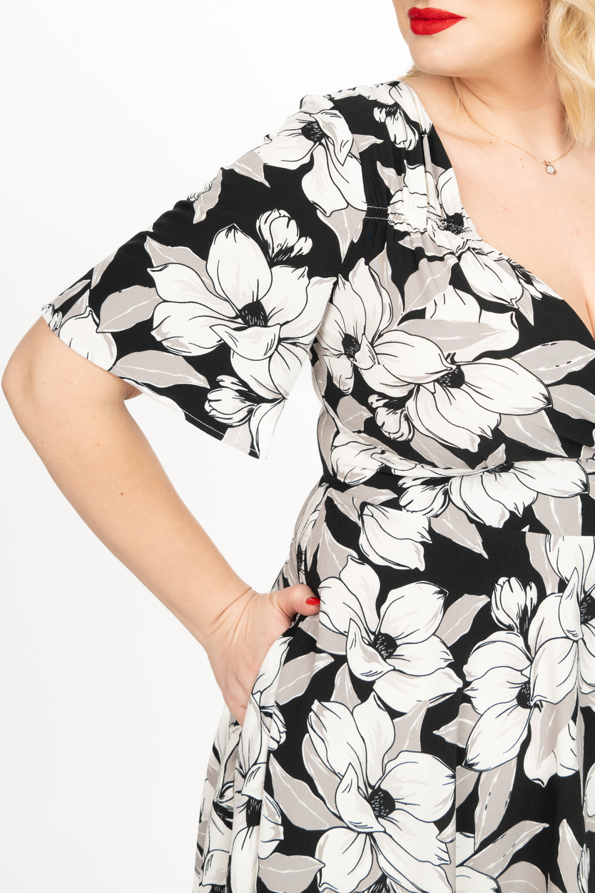 Rochia are elasticitate și buzunare.