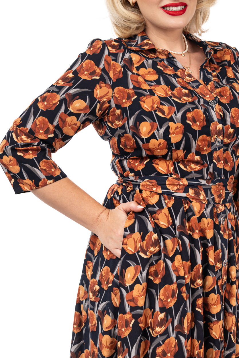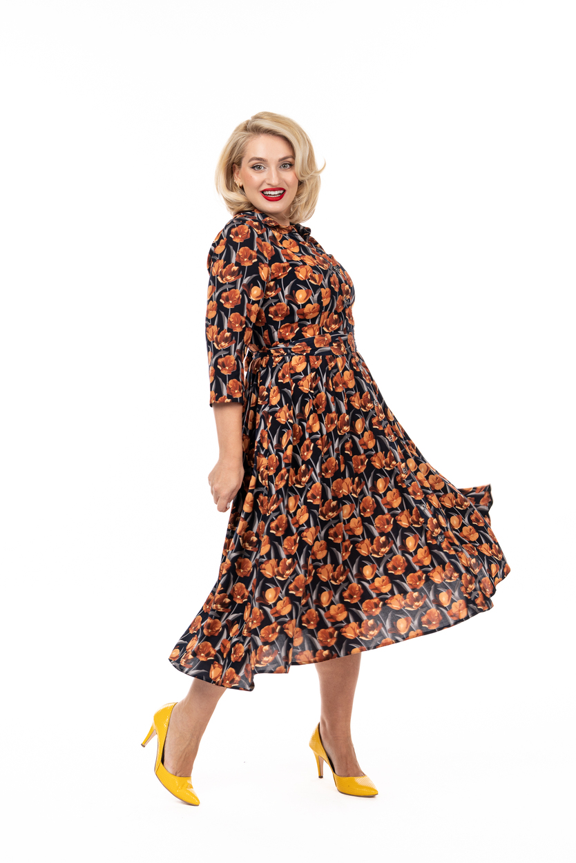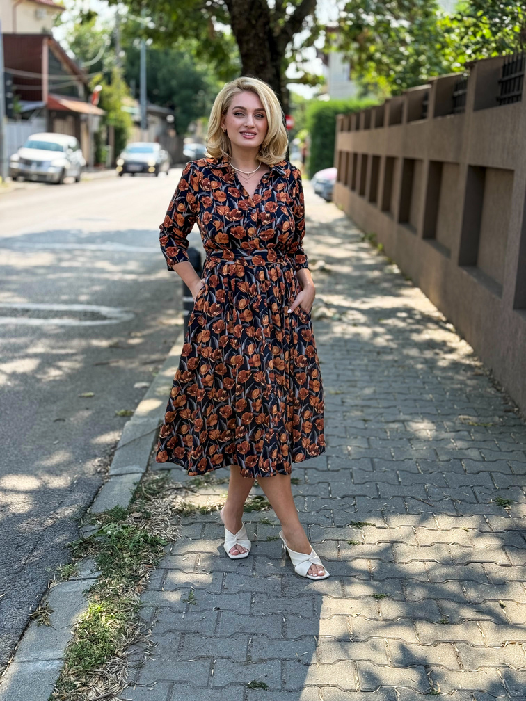 5 beneficii ale rochiei Rochia DORINA din bumbac cu lalele de toamnă în garderoba ta