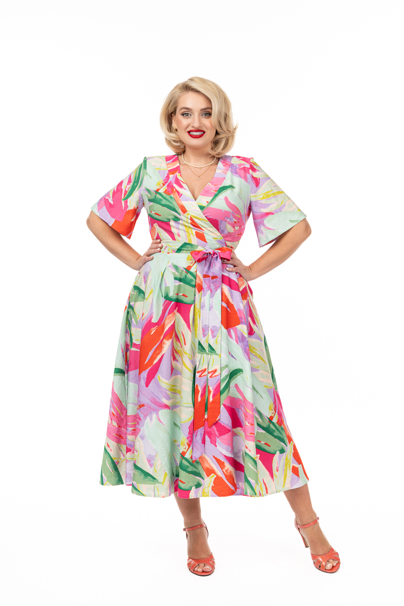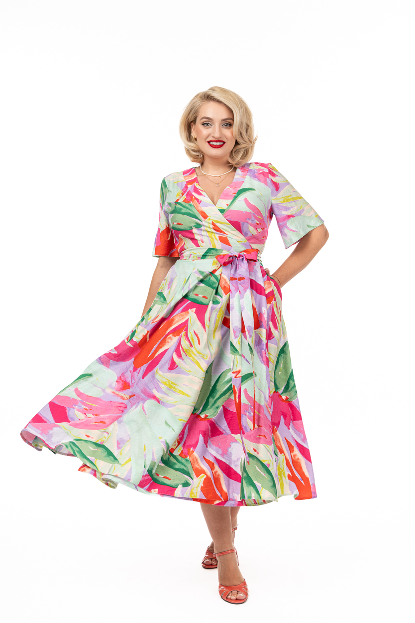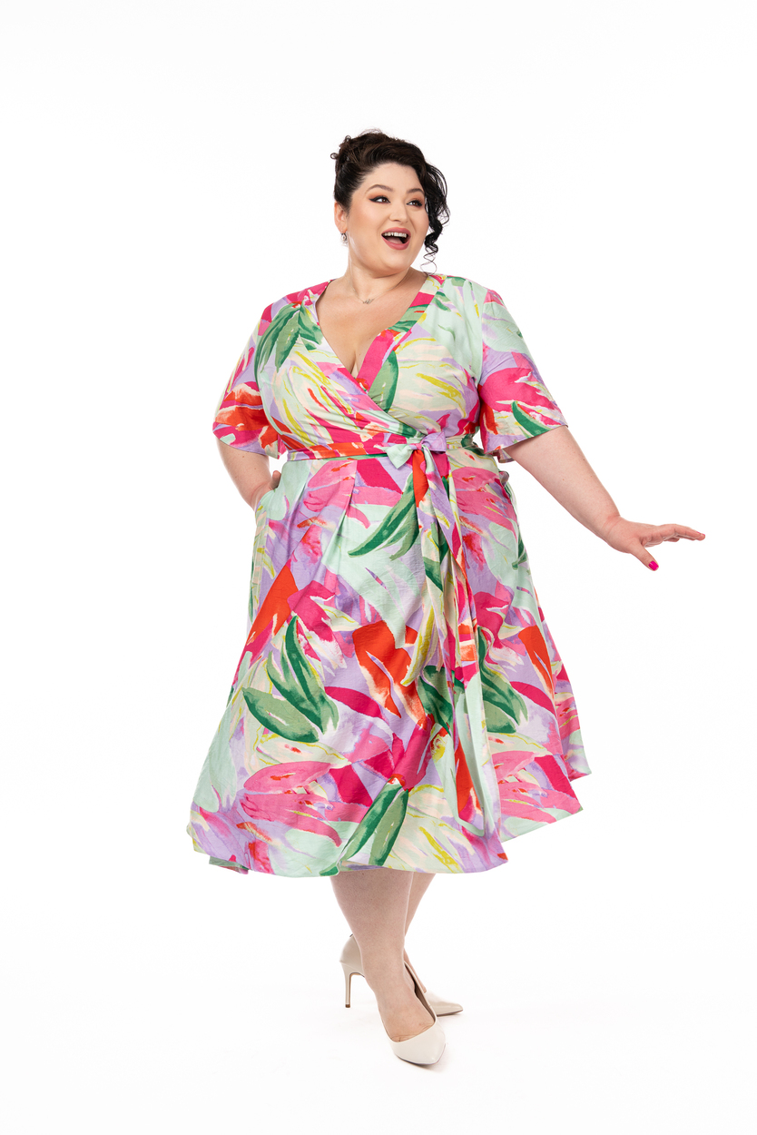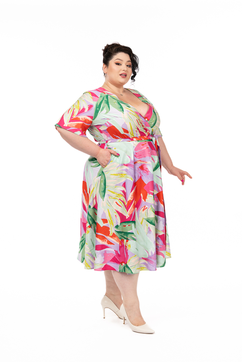 Rochia Maria exotic rainbow din viscozăeste o rochie petrecută foarte confortabilă. În alegerea mărimii trebuie să vă ghidati după circumferința bustului măsurată peste sutien.