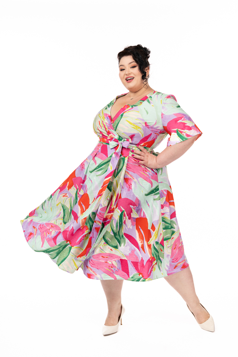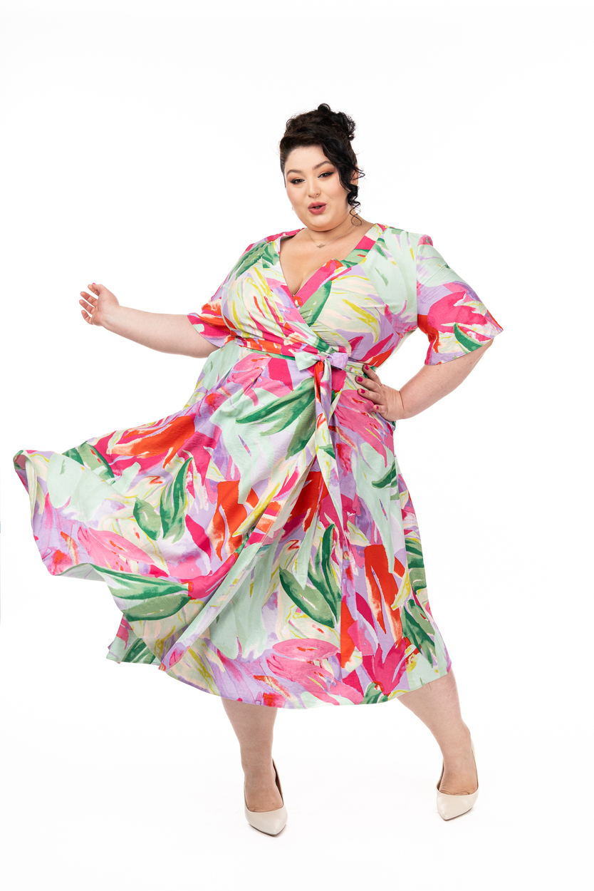 Rochia Maria exotic rainbow din viscoză este o rochie petrecută foarte confortabilă. În alegerea mărimii trebuie să vă ghidati după circumferința bustului măsurată peste sutien.
